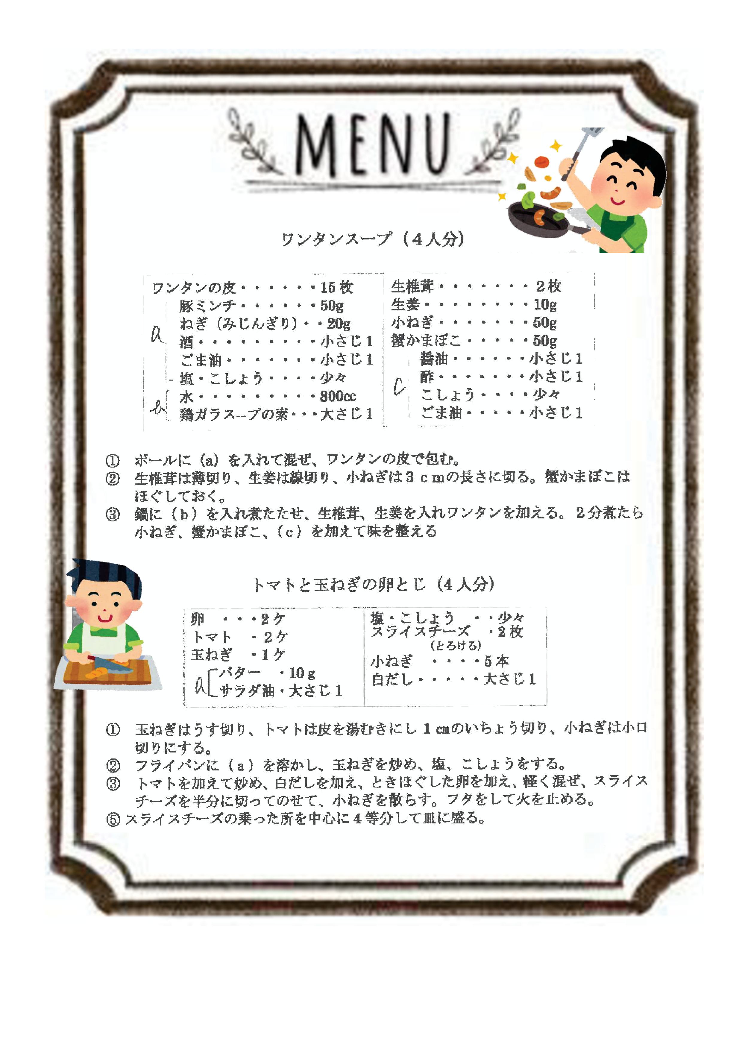 男性の皆さん! 気軽に料理を楽しみましょう!!